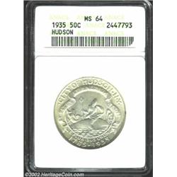 1935 50C Hudson MS64 ANACS. Delicate silver-gray iridescence overlays both sides of this lustrous, f