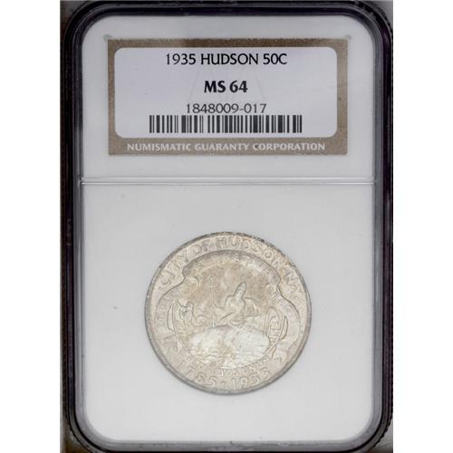 <B>1935<50C> Hudson MS64 NGC.</B></I> Sharp and lustrous for this low-mintage issue, with an overlay of golden-gray, speckled russet and golden-brown, and few marks on either side.