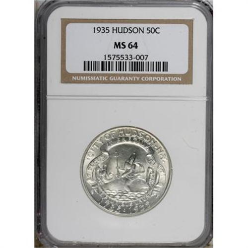 <B>1935 50C Hudson MS64 NGC.</B></I> NGC Census: (747/627). PCGS Population (1052/776). Mintage: 10,008. Numismedia Wsl. Price for NGC/PCGS coin in MS64: $1,275. (#9312)<BR><BR><b>Shipping:</b> Coins & Currency (<a target="_blank" href="http://www.heritageauctions.com/common/shipping.php">view shipping information</a>\)