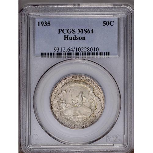 <B>1935<50C> Hudson MS64 PCGS.</B></I> Typically struck and satiny, with speckled patina near the borders and a few small marks near the untoned centers. Quite a nice example of this scarce commemorative issue.