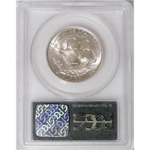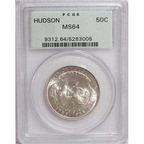 <B>1935 50C Hudson MS64 PCGS.</B></I> Light straw-gold and ice-blue shades embrace this highly lustrous and low mintage near-Gem. The reverse in particular is well preserved, but minor contact on the whale limits the grade. Housed in an old green label holder.<BR><BR><b>Shipping:</b> Coins & Currency (<a target="_blank" href="http://www.heritageauctions.com/common/shipping.php">view shipping information</a>\)