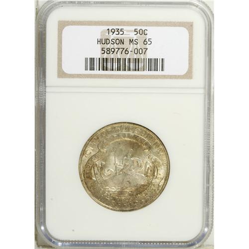 <B>1935 50C Hudson MS65 NGC.</B></I> A lustrous Gem that has golden-brown toning with traces of red. The devices are well struck, though the lines on the sails are incomplete. Examples that are better than Choice often prove elusive.<BR><BR><b>Shipping:</b> Coin/Currency (<a target="_blank" href="http://www.heritageauctions.com/common/shipping.php">view shipping information</a>)