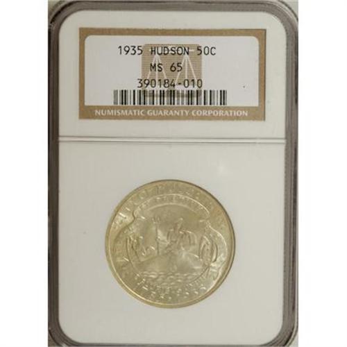 <B>1935 50C Hudson MS65 NGC.</B></I> Creamy luster and pale ivory-gold toning are highlights of this Gem Hudson commemorative half. The surface preservation of the piece is excellent, as expected for the grade. <BR><BR><b>Shipping:</b> Coins & Currency (<a target="_blank" href="http://www.heritageauctions.com/common/shipping.php">view shipping information</a>)