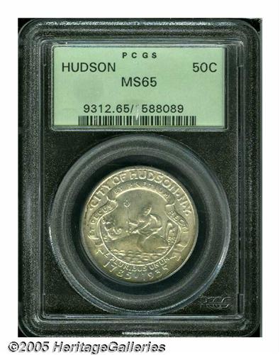 <B>1935<50C> Hudson MS65 PCGS.</B></I> Delicate chestnut color visits this satiny, unabraded, and reasonably struck Gem. Among the lowest mintage types.