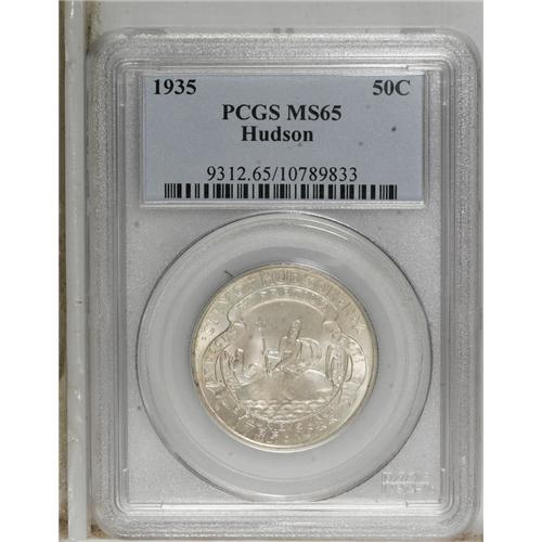 <B>1935 50C Hudson MS65 PCGS.</B></I> Pale caramel-gold and lime toning endows this crisply struck and splendidly smooth Gem. The low mintage Hudson type ranks high on the want list of many commemorative collectors.<BR><BR><b>Shipping:</b> Coins & Currency (<a target="_blank" href="http://www.heritageauctions.com/common/shipping.php">view shipping information</a>)