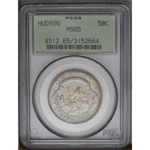 <B>1935 50C Hudson MS65 PCGS.</B></I> Sky-blue, apricot, and rose-gray tints confirm the originality of this lustrous and suitably preserved Gem. The low mintage Hudson has a subject of strong collector demand since its initial issue in 1935. Housed in a green label holder.