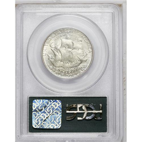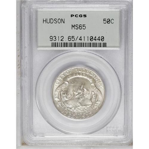 <B>1935 50C Hudson MS65 PCGS.</B></I> The obverse displays the usual lack of detail, though the ship's sails also lack some of their lines. Pale gold and lavender patina adorns each side of this pleasing Gem.<BR><BR><b>Shipping:</b> Coin/Currency (<a target="_blank" href="http://www.heritageauctions.com/common/shipping.php">view shipping information</a>)