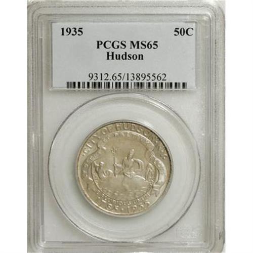 <B>1935 50C Hudson MS65 PCGS.</B></I> Boldly struck with satin luster and light rose-gray toning. Surface marks are minimal on this Gem Hudson commemorative. From a reasonably low mintage of 10,008 pieces. <BR><I>From The Frank DuVall Collection of U.S. Commemoratives.</B></I><BR><BR><b>Shipping:</b> Coins & Currency (<a target="_blank" href="http://www.heritageauctions.com/common/shipping.php">view shipping information</a>\)