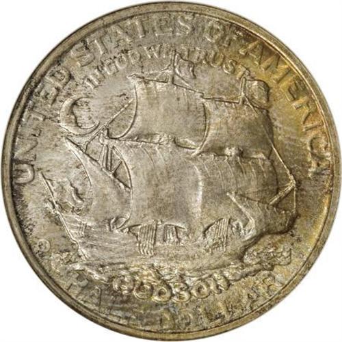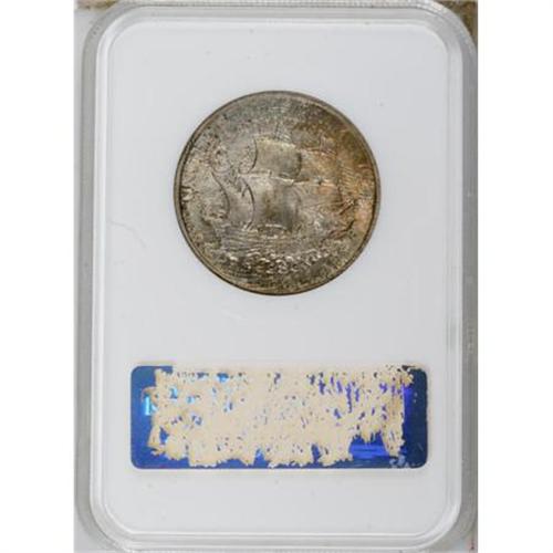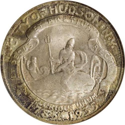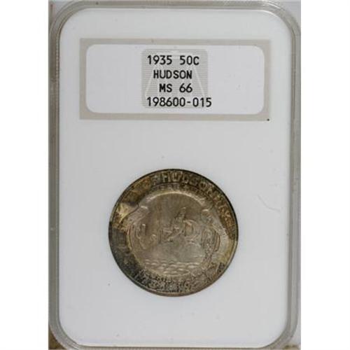<B>1935 50C Hudson MS66 NGC.</B></I> A tab-toned piece housed in an early generation holder. The medley of golden-gray, medium gray, lavender, and ice-blue toning visits lustrous surfaces that exhibit well struck design elements. Close scrutiny with a glass reveals no significant marks on either side.<BR><BR><b>Shipping:</b> Coins & Currency (<a target="_blank" href="http://www.heritageauctions.com/common/shipping.php">view shipping information</a>)