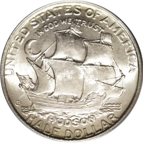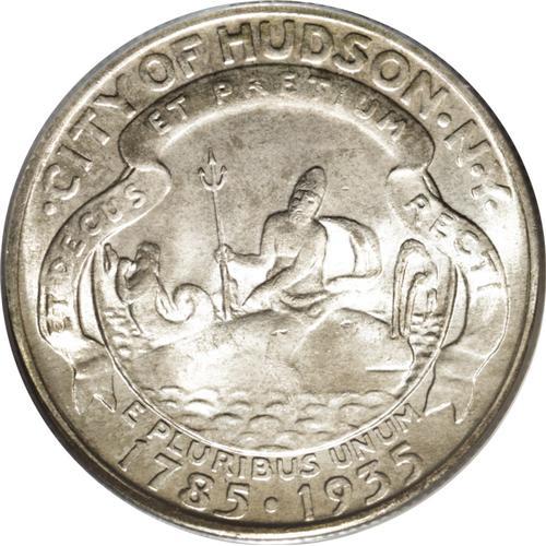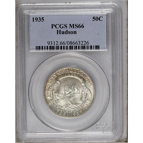 <B>1935<50C> Hudson MS66 PCGS.</B></I> A highly lustrous and slightly satiny example from an original mintage of 10,008 coins with light gold-gray patina over both sides. Nicely struck for this issue with the nearly immaculate surfaces demanded of the grade. PCGS has certified only five pieces finer (7/06).