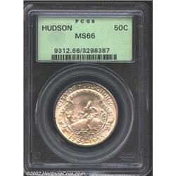 1935 50C Hudson MS66 PCGS. This pastel tinted example exhibits shades of golden-tan and steel-blue iridescence over thickly frosted features. Attractive.From the Tom Valos Collection. Important notice: We expect to be auctioning lots at the rate of 200-250 per hour. Sometimes eBay Premier live bid software cannot keep up with that pace, so we strongly recommend that you place a realistic proxy bid now as insurance to avoid disappointment. Also please note that all Heritage/CAA lots purchased through eBay Premier carry a 20% Buyer's Premium.