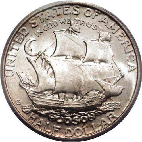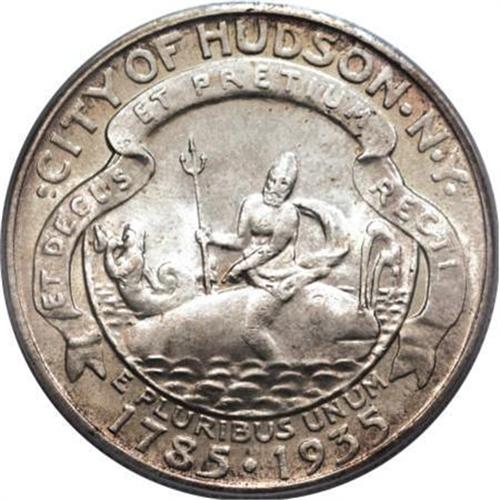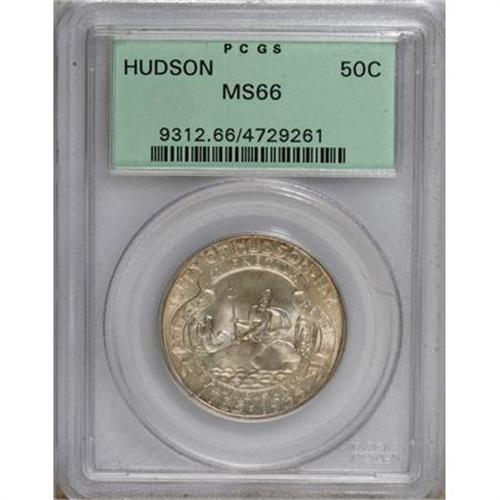 <B>1935 50C Hudson MS66 PCGS.</B></I> A thin veneer of violet, ice-blue, and golden-tan toning rests upon the radiantly lustrous surfaces of this Premium Gem commemorative half dollar, joined on both sides by occasional freckles of russet. Sharply struck throughout, and possessing just a few obverse milling marks that are consistent with the grade. Housed in a green label holder.<BR><BR><b>Shipping:</b> Coins & Currency (<a target="_blank" href="http://www.heritageauctions.com/common/shipping.php">view shipping information</a>)