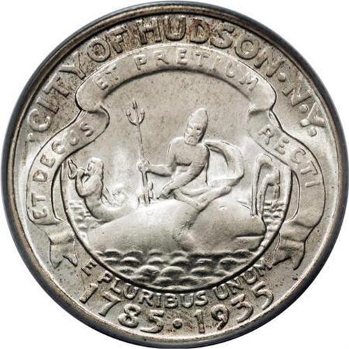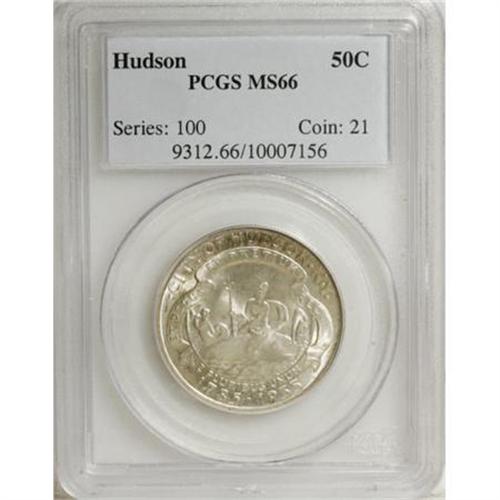 <B>1935 50C Hudson MS66 PCGS.</B></I> This almond-gold and ice-blue Premium Gem exhibits scintillating luster, and the surface preservation is extraordinary. As always for this much better type, the centers lack an absolute strike, and display hints of the texture of the planchet prior to its coinage.<BR><I>From The Sterling Collection.</B></I><BR><BR><b>Shipping:</b> Coins & Currency (<a target="_blank" href="http://www.heritageauctions.com/common/shipping.php">view shipping information</a>)