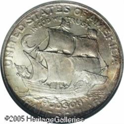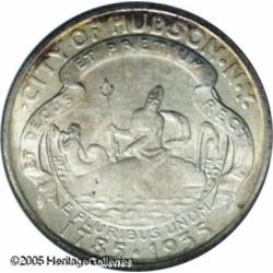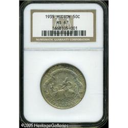 <B>1935 50C Hudson MS67 NGC.</B></I> One of the more challenging commemorative issues from the 1930s, from a mintage of just 10,008 pieces. This well struck representative is cloaked in milky silver-gray and apricot patina, the latter color gravitating to the margins. Population: 20 in 67, 0 finer (1/05). Lot:8506