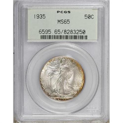 <B>1935 50C MS65 PCGS.</B></I> PCGS Population (909/378). NGC Census: (613/218). Mintage: 9,162,000. Numismedia Wsl. Price for NGC/PCGS coin in MS65: $550. (#6595)<BR><BR><B>Coin Engraver:</B> Adolph A. Weinman<BR><BR><b>Shipping:</b> Coins & Currency (<a target="_blank" href="http://www.heritageauctions.com/common/shipping.php">view shipping information</a>)