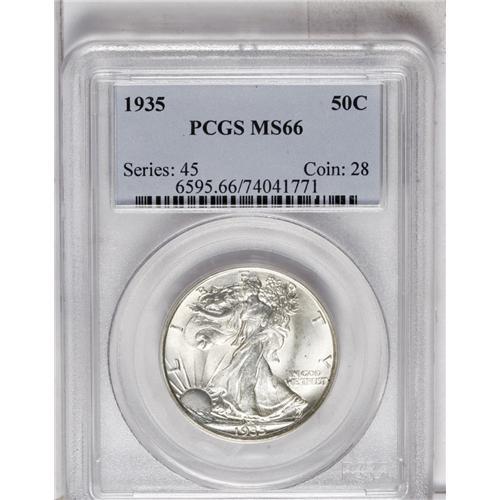 <B>1935<50C> MS66 PCGS.</B></I> Off-white colored with few marks and devices that while adequately struck, lack full detail in the centers. PCGS has only deemed seventeen examples finer (8/06).