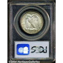 <B>1935<50C> MS66 PCGS.</B></I> Pale shades of violet, sky-blue, and gray patina grace each side of this marvelous Walking Liberty half dollar. The design elements are very well struck, with most of the detail in Liberty's left hand, head, and gown lines showing. A warm, lustrous glow is emitted from the well preserved satiny surfaces. The only marks worthy of note are four or five small abrasions on Liberty's outstretched right arm, though none of these are in the least bit serious. <BR><BR><B>Important notice:</B> Heritage usually auctions material at the rate of 200-250 lots per hour. On some occasions eBay Live bid software or the Internet may not be able to keep up with the pace of the auction. We recommend placing a realistic absentee bid now as insurance to avoid disappointment. Occasionally the auctioneer may eliminate or reject an eBay Live bid, and the auctioneer may also reopen a lot after the close of the eBay live bidding (usually because we missed an audience bid), and may reject your bid even if it shows you as the winning bidder. By bidding via eBay Live, you agree that Heritage may award the lot to another bidder at its sole discretion under the circumstances described above or any other reasonable circumstances. Since eBay bids are not shown to us until we open the lot on the floor, we treat those bids just like floor bids. In most cases the floor responds before the eBay bid is presented to us, due to Internet lag time, so for consistency we have made it a policy that floor bids are always considered first over tie eBay live bids. Also please note that all Heritage lots purchased through eBay Live carry a 20% Buyer's Premium. Please make sure you read the Terms and Conditions before you bid. </span></font></tr></table></td></tr></table>