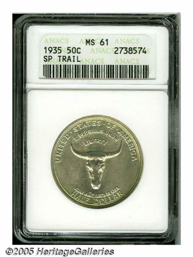 <B>1935<50C> Spanish Trail MS61 ANACS.</B></I> Brilliant and actually quite attractive for the grade with no mentionable abrasions on either side.