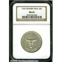 <B>1935 50C Spanish Trail MS65 NGC.</B></I> Smooth silver-gray surfaces reveal shimmering luster and sharply struck devices.