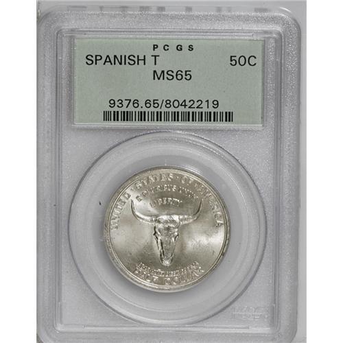 <B>1935<50C> Spanish Trail MS65 PCGS.</B></I> Along with the Hawaiian, this is one of the most difficult pieces to acquire for the classic commemorative "short set." Highly lustrous with light gold patina and sharply struck. Housed in a green label holder.