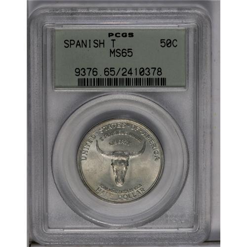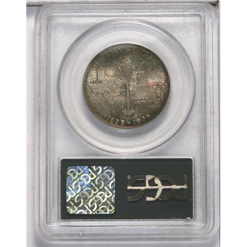 <B>1935<50C> Spanish Trail MS65 PCGS.</B></I> Beautiful forest-green, fire-red, and gunmetal-gray drape the reverse. By comparison, the obverse is only lightly toned. This lustrous and well struck low mintage half dollar is encased in a green label holder.