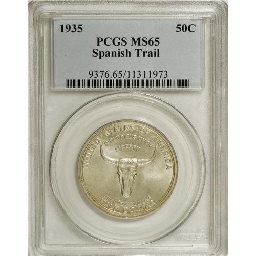 <B>1935 50C Spanish Trail MS65 PCGS.</B></I> Delicate gold and lavender toning appears against the silver-gray surfaces, which have subtle, almost still luster. Solidly struck with only a few stray marks.<BR><BR><b>Shipping:</b> Coins & Currency (<a target="_blank" href="http://www.heritageauctions.com/common/shipping.php">view shipping information</a>)