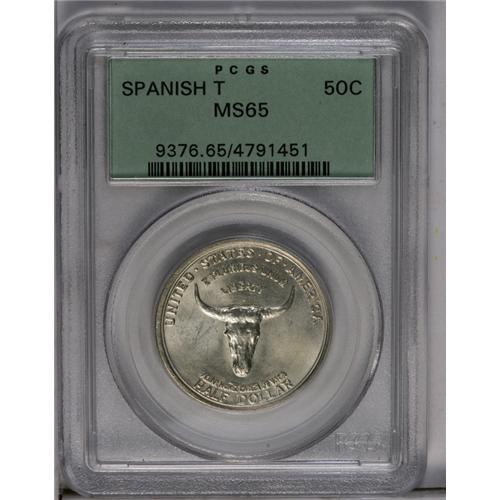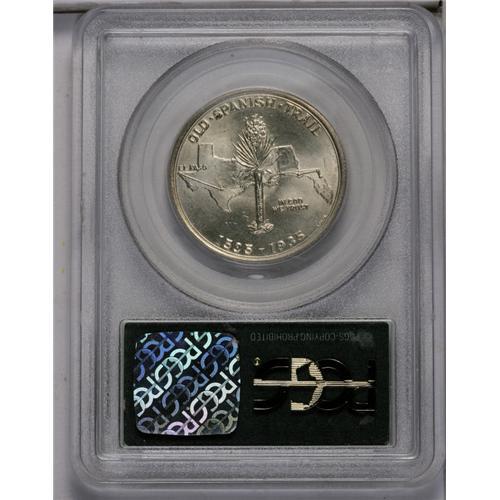 <B>1935<50C> Spanish Trail MS65 PCGS.</B></I> This needle-sharp example exhibits sweeping satin luster, and light gold toning confirms the originality. No obtrusive marks are encountered. Certified in a green label holder.