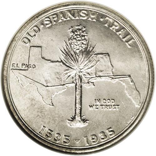 <B>1935<50C> Spanish Trail MS66 NGC.</B></I> A lovely, faintly toned example of this popular commemorative. Both sides are exceptionally clean considering the open nature of the fields, save for one tiny milling mark to the right of IN GOD WE TRUST on the reverse. The strike is excellent, the quality is superb, and the overall eye appeal is highly impressive.