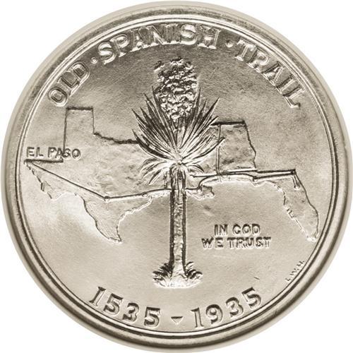 <B>1935<50C> Spanish Trail MS66 NGC.</B></I> While quite a number of Gem Spanish Trail half dollars have been certified at the various numeric levels, few have the exceptional eye appeal of this brilliant and highly lustrous example. Both sides have frosty silver luster and pristine surfaces. This extraordinary Premium Gem is sharply struck, and it possesses pristine obverse and reverse surfaces. Only 70 finer examples of this commemorative variety have been certified by NGC (9/06).