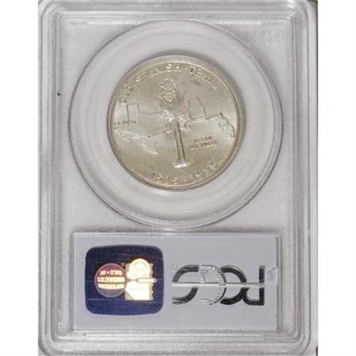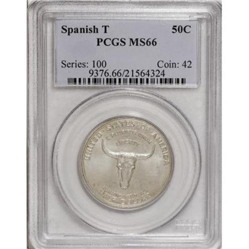 <B>1935 50C Spanish Trail MS66 PCGS.</B></I> Rich silver-gray patina with hints of tan and lavender graces the luminous surfaces of this solidly struck Premium Gem. The Spanish Trail is one of the lowest-mintage single-issue silver commemorative designs.<BR><BR><b>Shipping:</b> Coins & Currency (<a target="_blank" href="http://www.heritageauctions.com/common/shipping.php">view shipping information</a>)