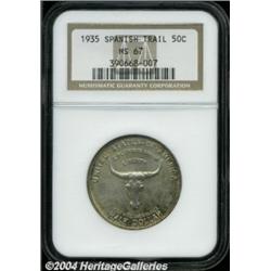 <table><tbody><tr><td><table> <TR><TD width="100%"><TABLE cellSpacing=1 cellPadding=3 width="100%" border=0><TBODY><TR><TD width="100%" bgColor=#79735c><FONT face=arial color=#ffffff size=3><B>Description</B> </FONT></TD></TR><TR><TD width="100%" bgColor=#ffffff><FONT face=arial size=2><B>1935 50C Spanish Trail MS67 NGC.</B></I> Intermittent overlays of argent-gray and burnt-orange toning are sprinkled over both sides of this impeccable, wholly original Spanish Trail Half. The fragile fields are unusually smooth for this often abraded issue. Population: 40 in 67, 0 finer (11/03). </FONT></TD></TR></TBODY></TABLE></TD></TR></TBODY></TABLE><BR><A name=PricesRealized></A><TABLE cellSpacing=0 cellPadding=0 width="100%" bgColor=#000000 border=0><TBODY><TR><TD width="100%"><TABLE cellSpacing=1 cellPadding=3 width="100%" border=0><TBODY><TR><TD width="100%" bgColor=#79735c><A name=PR><FONT face=arial color=#ffffff size=3><B>Previous Prices from Heritage Auctions</B> </FONT></A></TD></TR><TR><TD bgColor=#f6f6ed><TABLE cellSpacing=0 cellPadding=0 width="100%" border=1><TBODY><TR><TD align=middle width="33%"><B>Date</B></TD><TD align=middle width="33%"><B>Service</B></TD><TD align=middle width="33%"><B>Price</B></TD></TR><TR bgColor=whitesmoke><TD width="33%"><B>09/02/2003</B></TD><TD width="33%">NGC</TD><TD width="33%">$2,185.00</TD></TR><TR bgColor=whitesmoke><TD width="33%"><B>01/07/2004</B></TD><TD width="33%">PCGS</TD><TD width="33%">$2,472.50</TD></TR><TR bgColor=whitesmoke><TD width="33%"><B>07/30/2002</B></TD><TD width="33%">PCGS</TD><TD width="33%">$2,760.00</TD></TR><TR bgColor=whitesmoke><TD width="33%"><B>06/08/2002</B></TD><TD width="33%">PCGS</TD><TD width="33%">$2,415.00</TD></TR><TR bgColor=whitesmoke><TD width="33%"><B>01/12/2002</B></TD><TD width="33%">PCGS</TD><TD width="33%">$2,357.50</TD></TR><TR bgColor=whitesmoke><TD width="33%"><B>04/05/2001</B></TD><TD width="33%">PCGS</TD><TD width="33%">$2,530.00</TD></TR><TR bgColor=whitesmoke><TD width="33%"><B>02/11/2000</B></TD><TD width="33%">PCGS</TD><TD width="33%">$2,185.00</TD></TR><TR bgColor=whitesmoke><TD width="33%"><B>08/13/1999</B></TD><TD width="33%">PCGS</TD><TD width="33%">$2,300.00</TD></TR><TR bgColor=whitesmoke><TD width="33%"><B>01/06/1996</B></TD><TD width="33%">PCGS</TD><TD width="33%">$2,200.00</TD></TR></TBODY></TABLE></TD></TR><TR><TD bgColor=#ffffff><FONT face=arial size=1 ?>PLEASE NOTE: All prices realized reflect the final hammer price PLUS the buyer's premium in auctions that charge a buyer's premium. Each item has a notation at the top of the listing indicating whether that lot included a buyer's premium. Example: A item that sells with a final hammer price of $100 and a 20% buyer's premium will display with a price realized of $120. All information listed is intended to be as accurate as possible, but errors are possible. Please use this guide carefully and inform us of any inaccuracies. </FONT></TD></TR></TBODY></TABLE></TD></TR></TBODY></TABLE><BR><TABLE cellSpacing=0 cellPadding=0 width="100%" bgColor=#000000 border=0><TBODY><TR><TD width="100%"><TABLE cellSpacing=1 cellPadding=3 width="100%" border=0><TBODY><TR><TD width="100%" bgColor=#79735c colSpan=6><FONT face=arial color=#ffffff size=3><B>Price Guide*</B> </FONT></TD></TR><TR bgColor=#f6f6ed><TD align=middle><B>Grade</B> </TD><TD align=middle><B>Coin World<BR>(Trends)</B> </TD><TD align=middle><B>Numismedia<BR>Retail</B> </TD><TD align=middle><B>Numismedia<BR>Wholesale</B> </TD><TD align=middle><B>Coin<BR>Universe</B> </TD><TD align=middle><B>Heritage<BR>Value Index</B> </TD></TR><TR bgColor=#ffffff><TD align=middle>66</TD><TD align=right>$1,500.00</TD><TD align=right>---</TD><TD align=right>$1,200.00</TD><TD align=right>$1,775.00</TD><TD align=right>$1,125.50</TD></TR><TR style="FONT-WEIGHT: bold" bgColor=#cccfdd><TD align=middle>67</TD><TD align=right>$3,000.00</TD><TD align=right>---</TD><TD align=right>$2,475.00</TD><TD align=right>$3,500.00</TD><TD align=right>$2,266.67</TD></TR><TR bgColor=#ffffff><TD align=middle>68</TD><TD align=right>---</TD><TD align=right>---</TD><TD align=right>---</TD><TD align=right>$12,500.00</TD><TD align=right>$8,750.00</TD></TR><TR bgColor=#ffffff><TD colSpan=6><FONT size=1>*All information listed is intended to be as accurate as possible, but errors are possible. No item may be returned or refused based on this information which is provided as a service to our customers. You should contact each pricing source directly to determine the accuracy of this information. </FONT></TD></TR></TBODY></TABLE></TD></TR></TBODY></TABLE><BR><TABLE cellSpacing=0 cellPadding=0 width="100%" bgColor=#000000 border=0><TBODY><TR><TD width="100%"><TABLE cellSpacing=1 cellPadding=3 width="100%" border=0><TBODY><TR><TD width="100%" bgColor=#79735c><FONT face=arial color=#ffffff size=3><B>Population Guide</B> </FONT></TD></TR><TR bgColor=#ffffff><TD align=middle><!-- Begin Output of Population Grid--><TABLE cellSpacing=0 cellPadding=0 width="100%" border=0><TBODY><TR><TD vAlign=center><TABLE cellSpacing=0 width="100%" border=1 cellsadding="3"><TBODY><TR><TD vAlign=center><TABLE cellSpacing=0 cellPadding=3 width="100%" border=1><TBODY><TR><TD vAlign=center align=middle bgColor=#f0f1e8 colSpan=2 <CENTER><FONT face=Arial size=2><B>PCGS Pop </B></FONT><CENTER></CENTER></TD><TD vAlign=center align=middle bgColor=#f0f1e8 colSpan=2><CENTER><FONT face=Arial size=2><B>NGC Pop</B></CENTER></FONT></TD></TR><TR><TD vAlign=center><FONT face=Arial size=2>(67)</FONT> </TD><TD vAlign=center align=right><FONT face=Arial size=2>77</FONT> </TD><TD vAlign=center><FONT face=Arial size=2>(67)</FONT> </TD><TD vAlign=center align=right><FONT face=Arial size=2>40</FONT> </TD></TR><TR><TD vAlign=center><FONT face=Arial size=2>(>67)</FONT> </TD><TD vAlign=center align=right><FONT face=Arial size=2>1</FONT> </TD><TD vAlign=center><FONT face=Arial size=2>(>67)</FONT> </TD><TD vAlign=center align=right><FONT face=Arial size=2>0</FONT> </TD></TR></TBODY></TABLE></TD