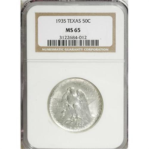<B>1935 50C Texas MS65 NGC.</B></I> . NGC Census: (409/834). PCGS Population (724/932). Mintage: 9,996. Numismedia Wsl. Price for NGC/PCGS coin in MS65: $292. (#9382)<BR><BR><b>Shipping:</b> Coins & Currency (<a target="_blank" href="http://www.heritageauctions.com/common/shipping.php">view shipping information</a>)