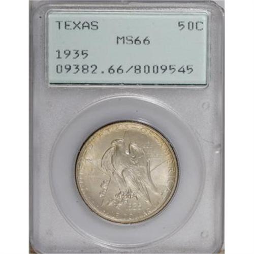 <B>1935 50C Texas MS66 PCGS.</B></I> PCGS Population (710/202). NGC Census: (563/259). Mintage: 9,996. Numismedia Wsl. Price for NGC/PCGS coin in MS66: $380. (#9382)<BR><BR><b>Shipping:</b> Coins & Currency (<a target="_blank" href="http://www.heritageauctions.com/common/shipping.php">view shipping information</a>\)