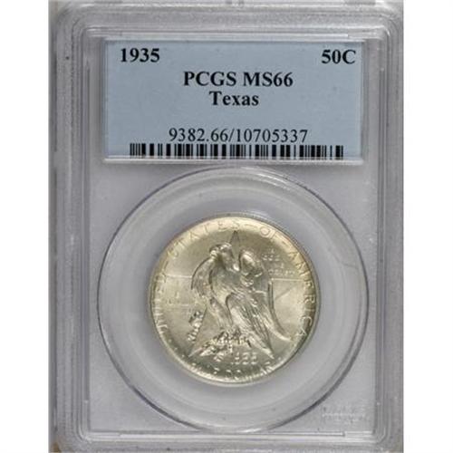 <B>1935 50C Texas MS66 PCGS.</B></I> PCGS Population (716/203). NGC Census: (567/258). Mintage: 9,996. Numismedia Wsl. Price for NGC/PCGS coin in MS66: $380. (#9382)<BR><BR><b>Shipping:</b> Coins & Currency (<a target="_blank" href="http://www.heritageauctions.com/common/shipping.php">view shipping information</a>)