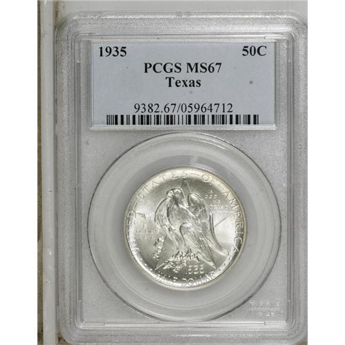 1935 50C Texas MS67 PCGS. Save for a touch of ice-blue