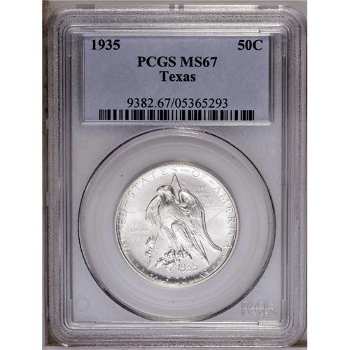 1935 50C Texas MS67 PCGS. Uncommon this nice with snow 1935[50C] Texas MS67 PCGS.