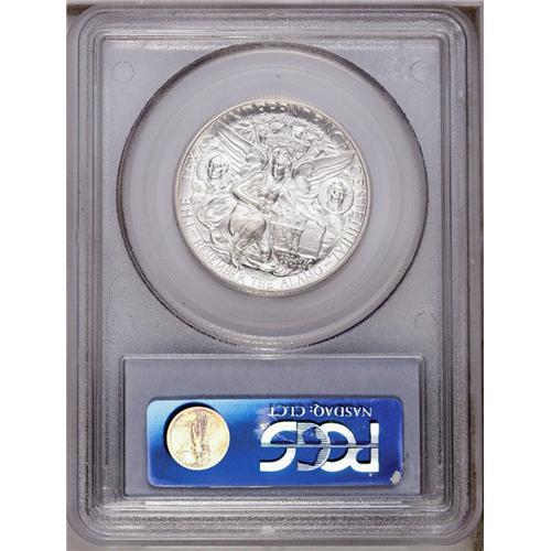 <B>1935<50C> Texas MS67 PCGS.</B></I> Uncommon this nice with snow-white fields that shimmer with near matte-like luster. The obverse of this example appears pristine, while several minute marks on the reverse prevent an even higher grade. Population: 144 in 67, 5 finer (3/06). <BR><BR><B>Important notice:</B> Heritage usually auctions material at the rate of 200-250 lots per hour. On some occasions eBay Live bid software or the Internet may not be able to keep up with the pace of the auction. We recommend placing a realistic absentee bid now as insurance to avoid disappointment. Occasionally the auctioneer may eliminate or reject an eBay Live bid, and the auctioneer may also reopen a lot after the close of the eBay live bidding (usually because we missed an audience bid), and may reject your bid even if it shows you as the winning bidder. By bidding via eBay Live, you agree that Heritage may award the lot to another bidder at its sole discretion under the circumstances described above or any other reasonable circumstances. Since eBay bids are not shown to us until we open the lot on the floor, we treat those bids just like floor bids. In most cases the floor responds before the eBay bid is presented to us, due to Internet lag time, so for consistency we have made it a policy that floor bids are always considered first over tie eBay live bids. Also please note that all Heritage lots purchased through eBay Live carry a 20% Buyer's Premium. Please make sure you read the Terms and Conditions before you bid. This lot is being auctioned in conjunction with a live floor auction by Heritage Galleries & Auctioneers. All final auction and invoice information will be supplied by Heritage Galleries & Auctioneers, and all other information should be considered preliminary. Lot:5094 <BR><BR><B>Winning Notification and Billing:</B> After the FINAL session in this auction is complete, Heritage will send e-mail and snail mail invoices. This process normally takes several days. All final auction and invoice information will be supplied by Heritage Galleries & Auctioneers, and all other information should be considered preliminary. <BR><BR>This auction will be conducted on a live auction floor and over the Internet through eBay Live. If you choose to place an absentee bid, please take a moment to <font color='#0000ff'><u><a href='http://pages.ebay.com/liveauctions/help/before/laabsentee.html'>learn how eBay Live absentee bidding works</a></u></font><font color='#000000'>