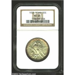 1935 50C Texas MS68 NGC. Peripherally toned in rich reddish-russet colors, the surfaces are silver-g