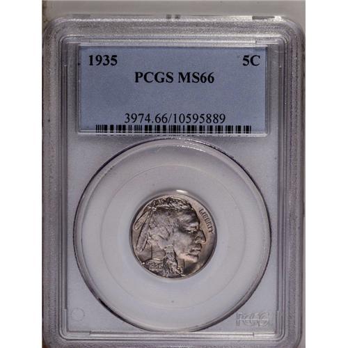 <B>1935<5C> MS66 PCGS.</B></I> This is a desirable Premium Gem example with frosty nickel-gray luster beneath light golden color. Typical central weakness is noted, especially on the obverse.