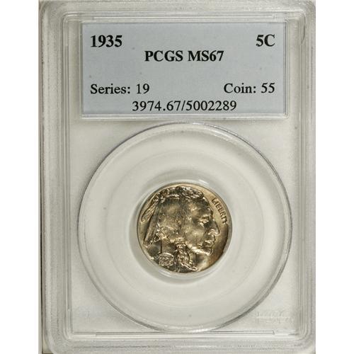 1935 5C MS67 PCGS. Crisply struck with bright satiny l