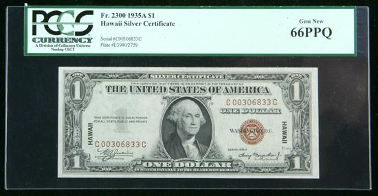 1935-A, $1 World War II Emergency Note. Hawaii. PCGS Gem New 66PPQ. . Fr-2300. This beautiful Gem is from the C-C block, and is fully embossed and beautifully margined.