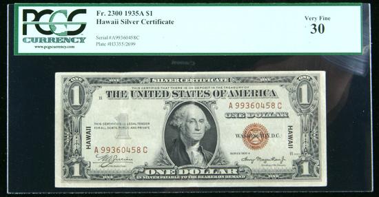 1935-A, $1 World War II Emergency Note. Hawaii. PCGS Very Fine 30. . Fr-2300. This modestly circulated example is from the much scarcer A-C block.