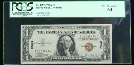 1935-A, $1 World War II Emergency Note. Hawaii. PCGS Very Choice New 64. . Fr-2300. From the P-C block, a hair away from Gem margins.