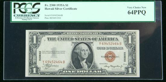 1935-A, $1 World War II Emergency Note. Hawaii. PCGS Very Choice New 64PPQ. . Fr-2300. A nice, fully original near-Gem from the Y-B block.
