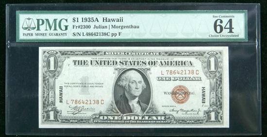 1935-A, $1 World War II Emergency Note. Hawaii. PMG Choice Uncirculated 64EPQ. . Fr-2300. A lovely near-Gem Hawaii note from the L-C block.