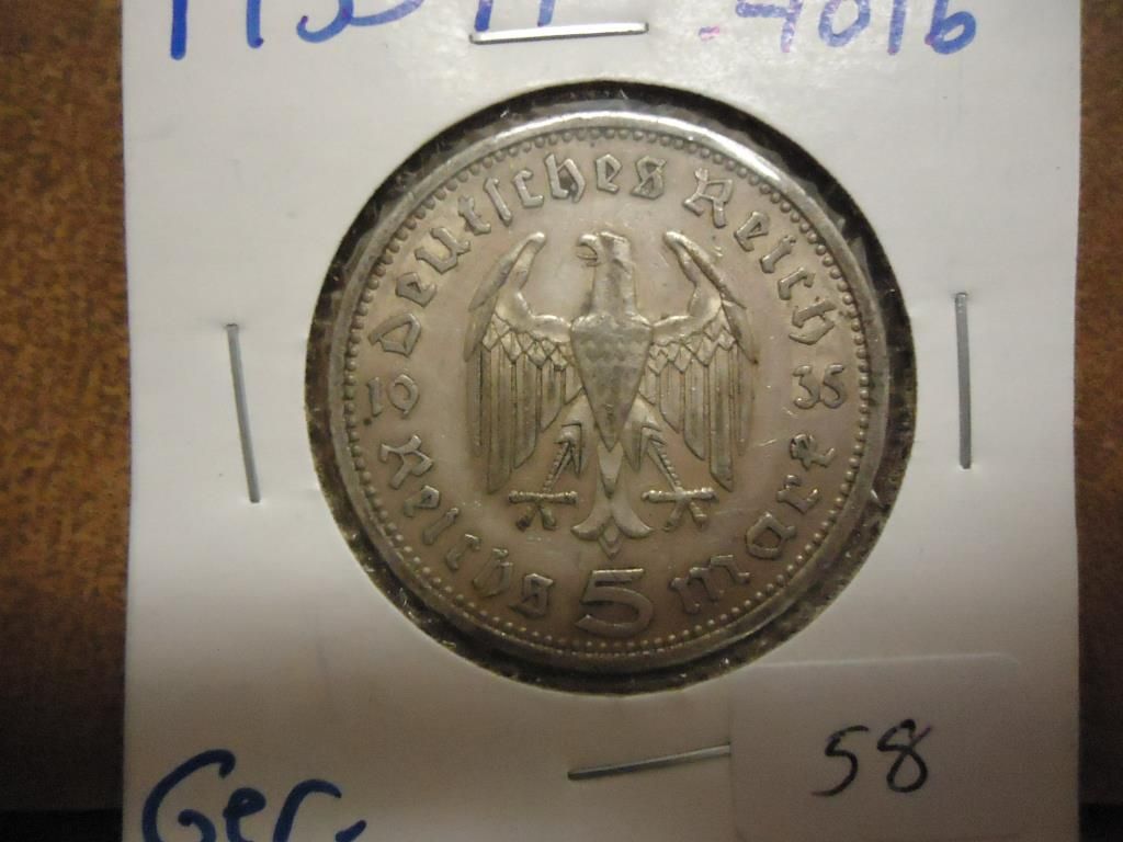1935-A GERMAN SILVER 5 MARKS .4016 OZ. ASW