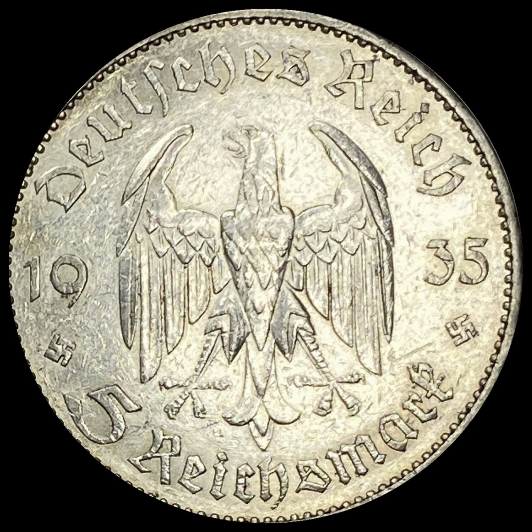 1935-A Germany Silver 5 Reichsmark CHOICE AU