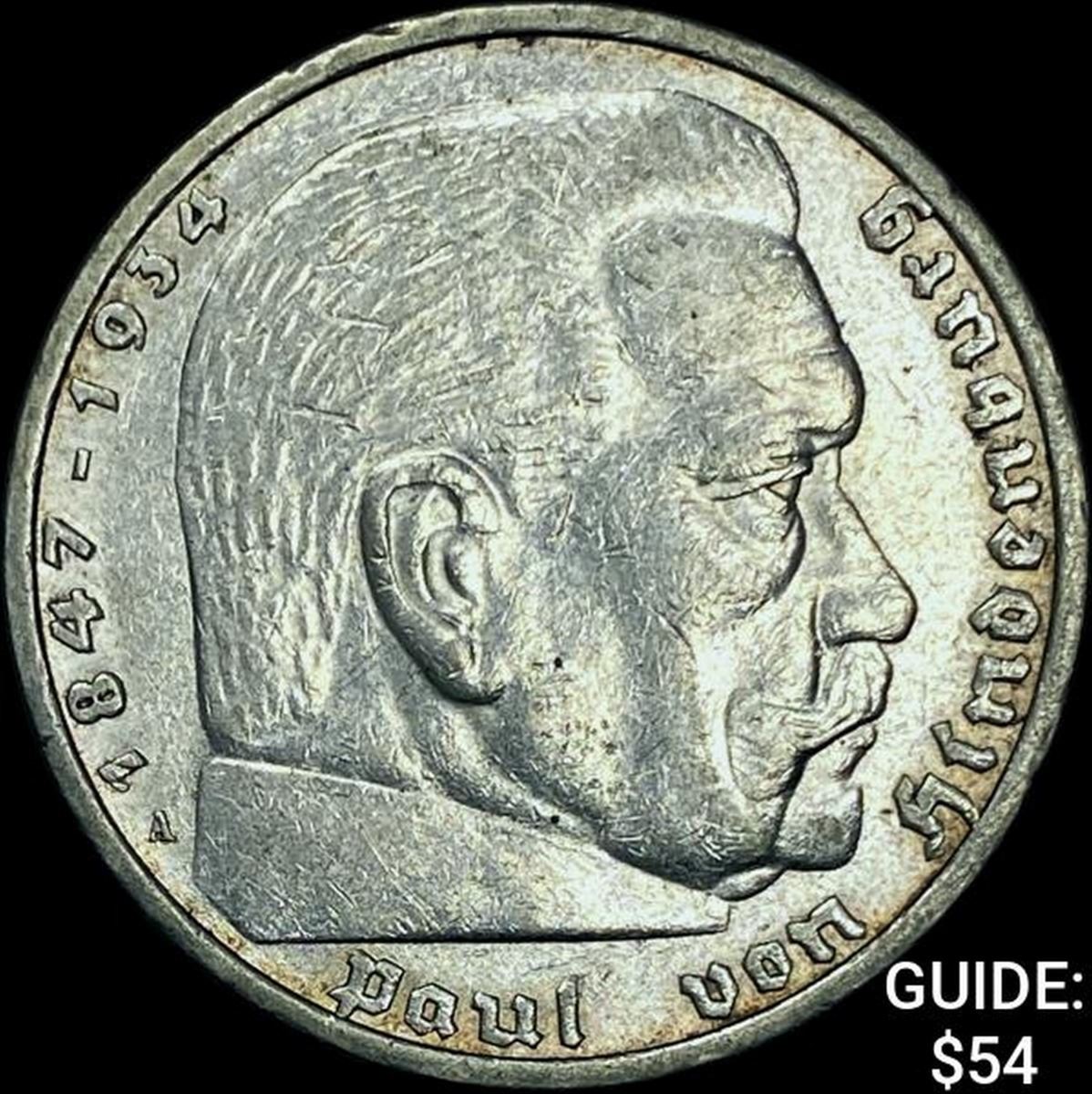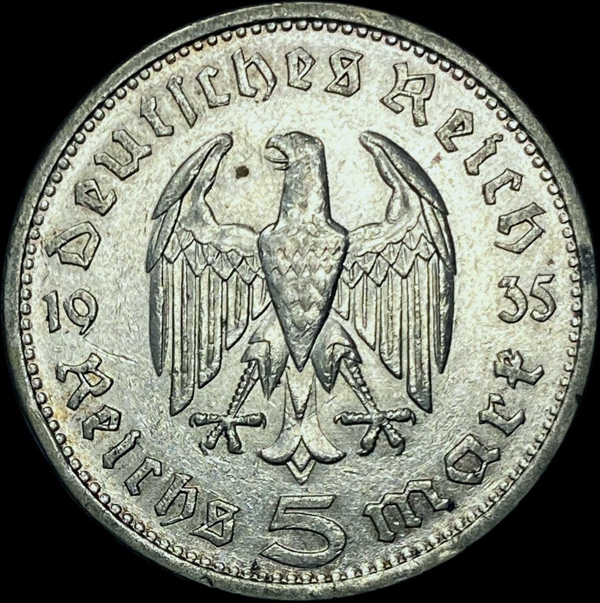 1935-A Germany Silver 5 Reichsmark CHOICE AU