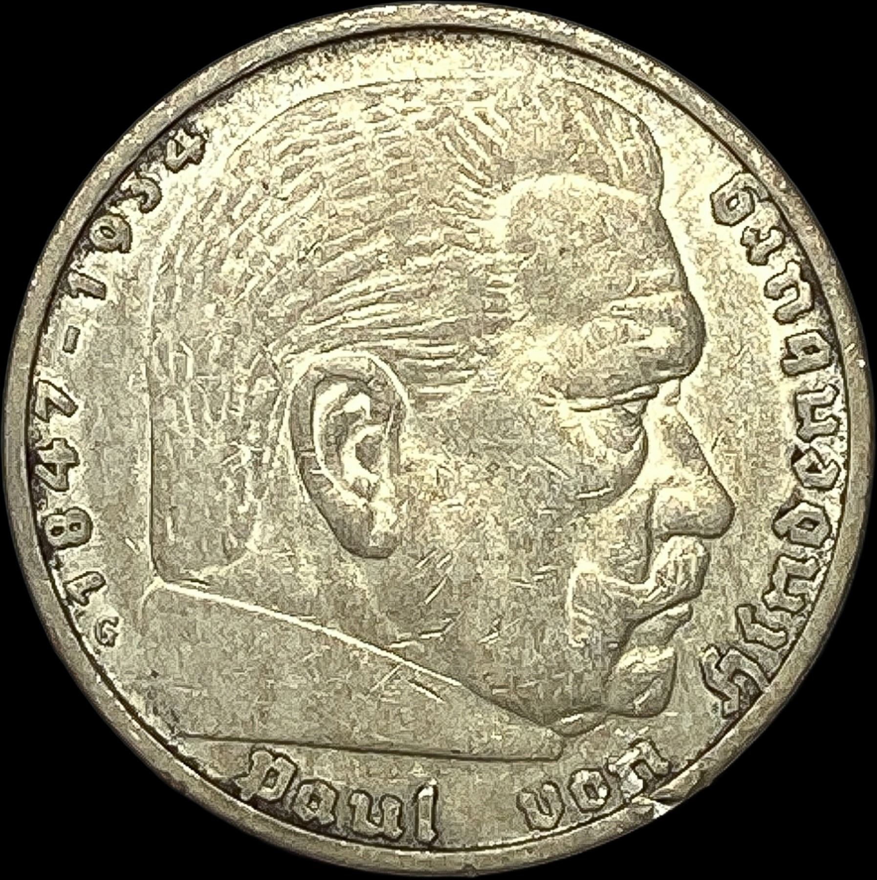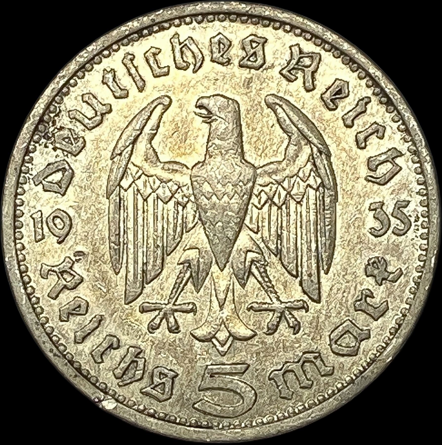 1935-A Germany Silver 5 Reichsmark CLOSELY UNCIRCULATED