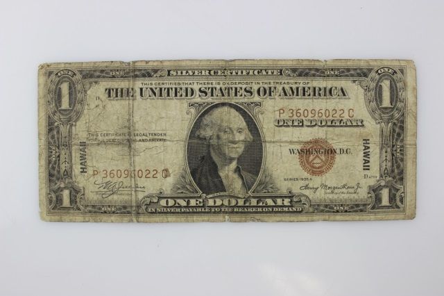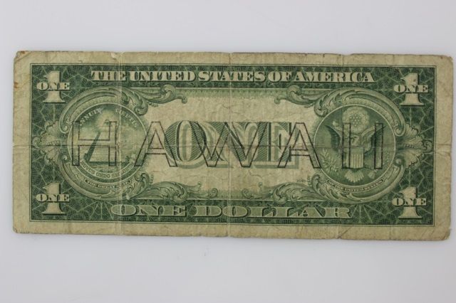 WWII Series 1935 A Hawaii overprint Silver Certificate in G condition. Used in Hawaii to protect against the Japanese capturing monies in Hawaii backed by actual silver. This Silver Certificate has several folds and when held up to the light has some small pin holes but is still a neat piece of US currency history.